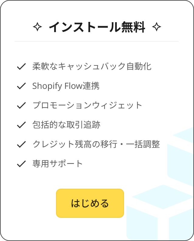 ストアクレジットのキャッシュバックリワードを提供して、リピート購入を促進しましょう。