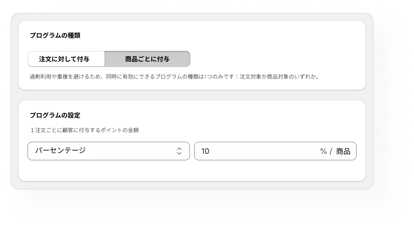 - 注文金額、または、商品ごと、コレクションごとにポイント付与率を設定